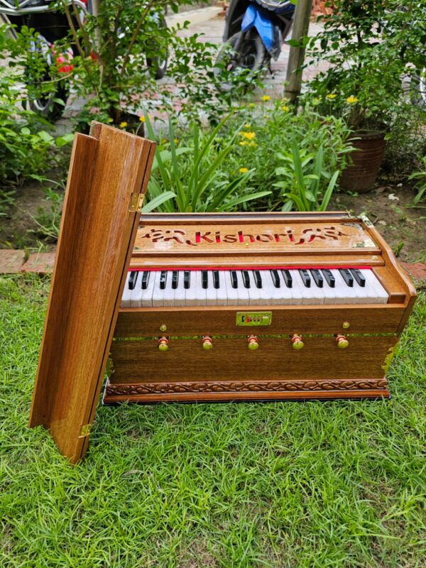 Be the first to review “Kishori Aesthetic 42-Key Standing Harmonium offers a rich Indian voice with three sets of reeds and five stops. Its light brown finish adds a touch of elegance to any space.”