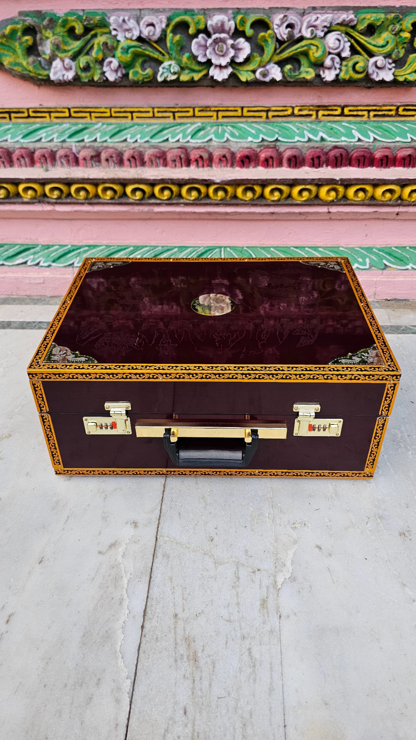 Finish – Natural, mahogany-toned finish with brass metal fittings, adding both aesthetic appeal and structural strength.