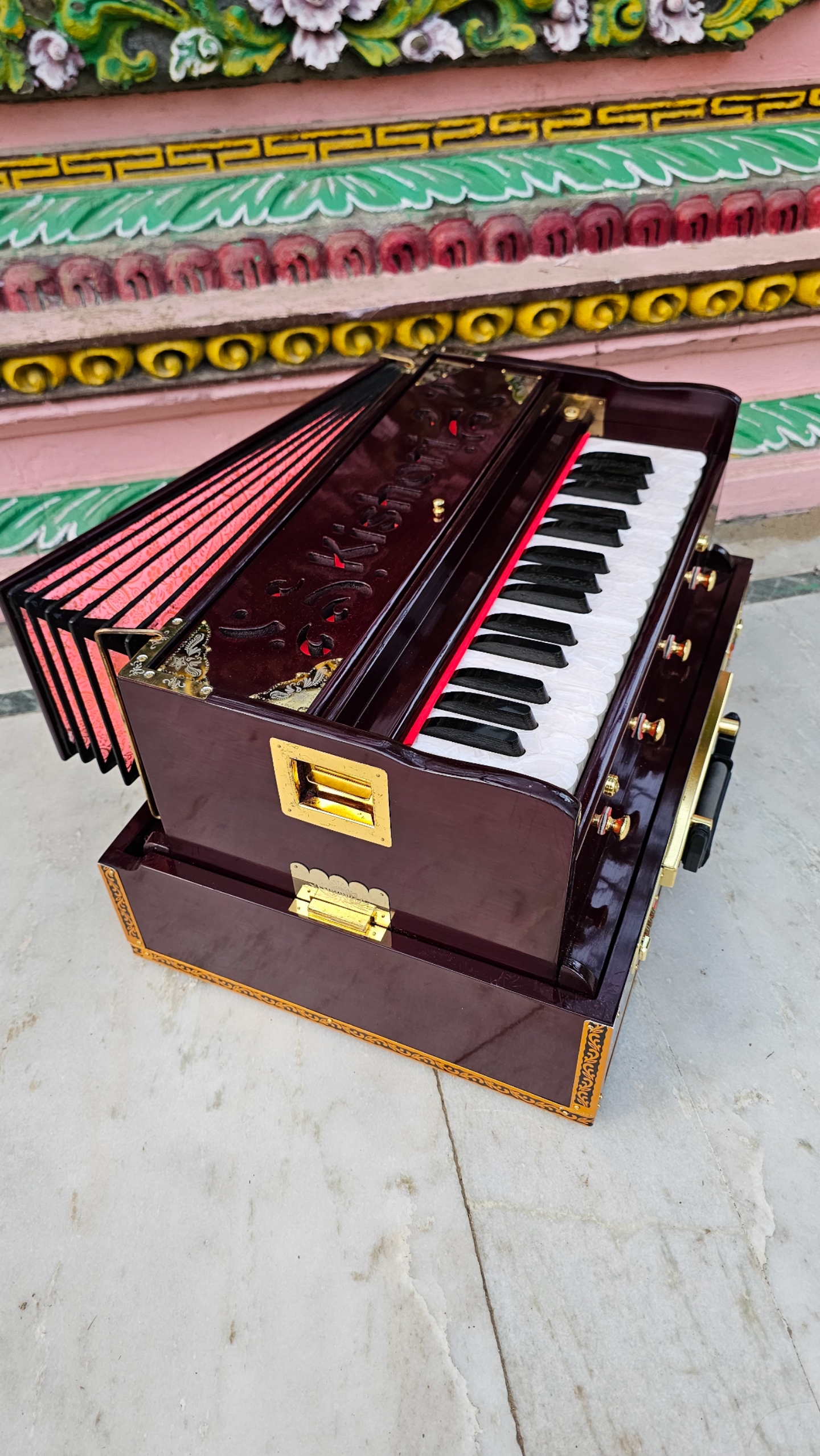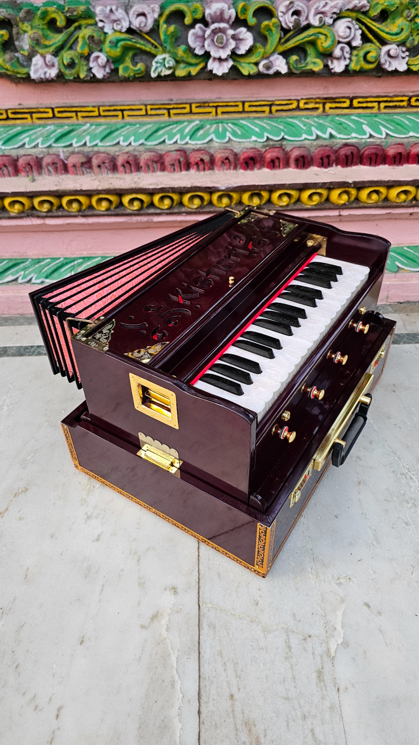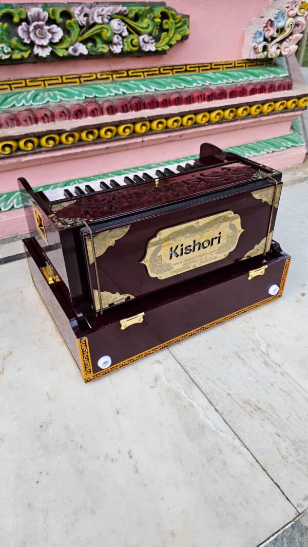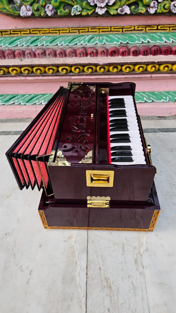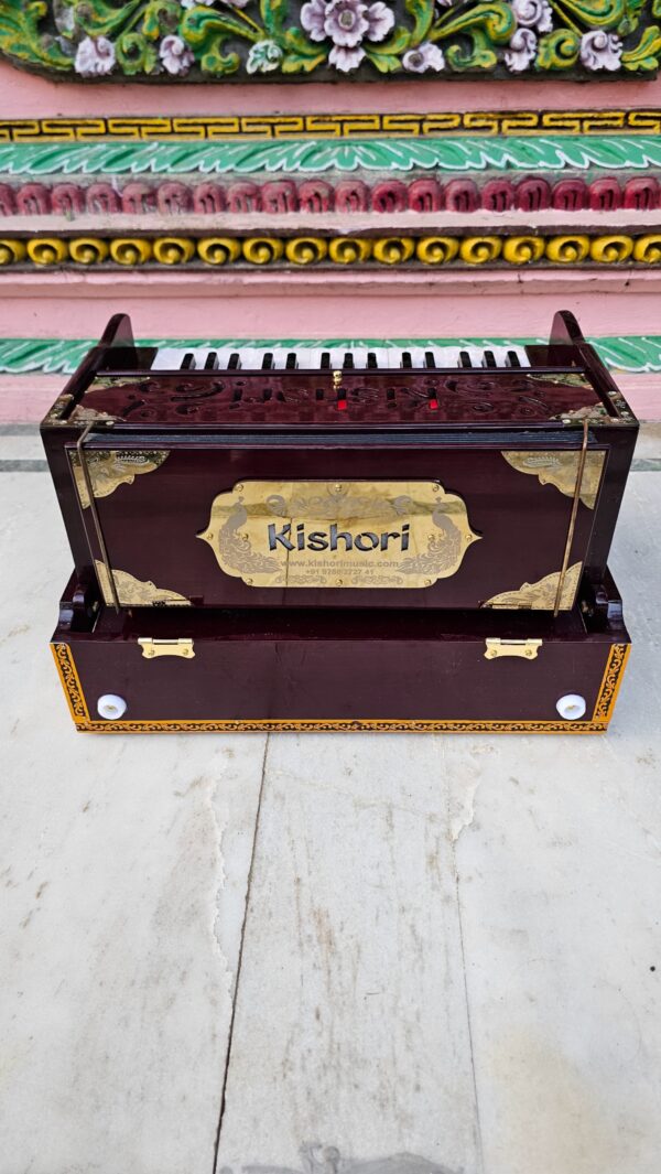 The Kishori Infinite Mahogany Color 32-Key Portable Harmonium (Product Code: 32PHM) is a top-tier instrument that combines professional-grade craftsmanship with ease of use, suitable for players of all levels. Here’s a closer look at what makes this harmonium unique: